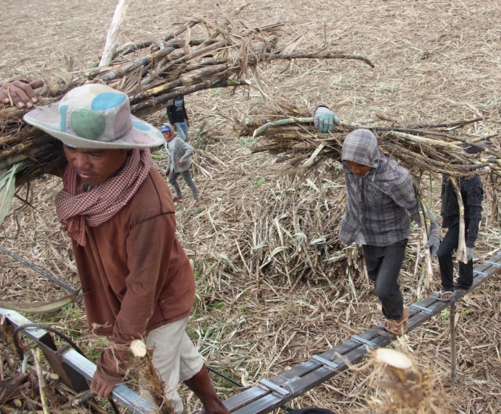 Nông dân huyện Châu Thành thu hoạch mía.