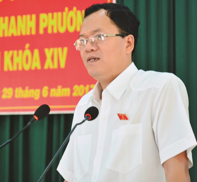 Ông Huỳnh Thanh Phương phát biểu tại buổi tiếp xúc cử tri. Ảnh: Hoa Lư