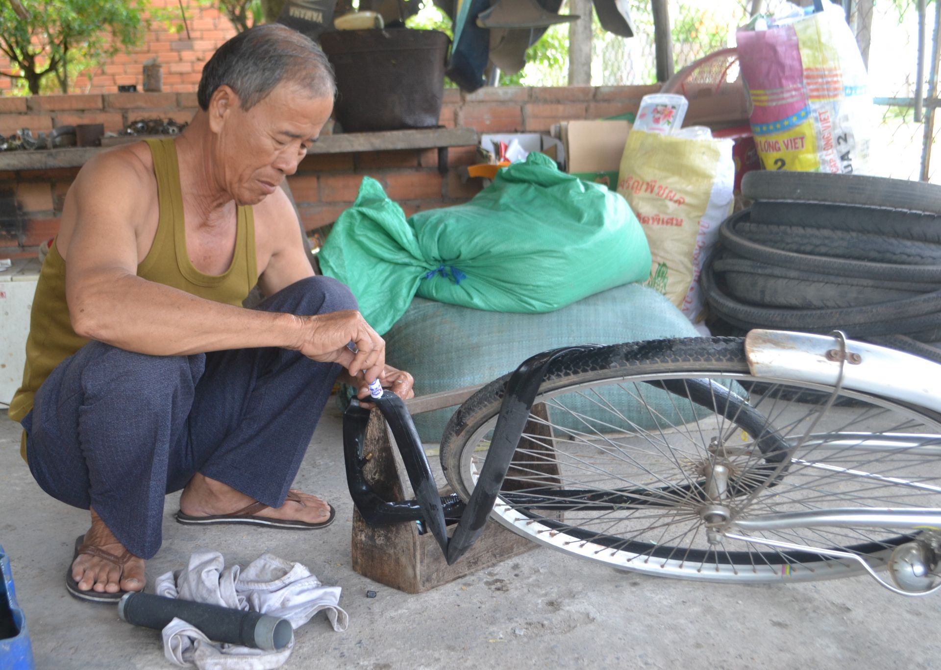 Ngoài công việc của ấp, ông Miền còn làm nghề sửa xe để có thu nhập lo cho gia đình.