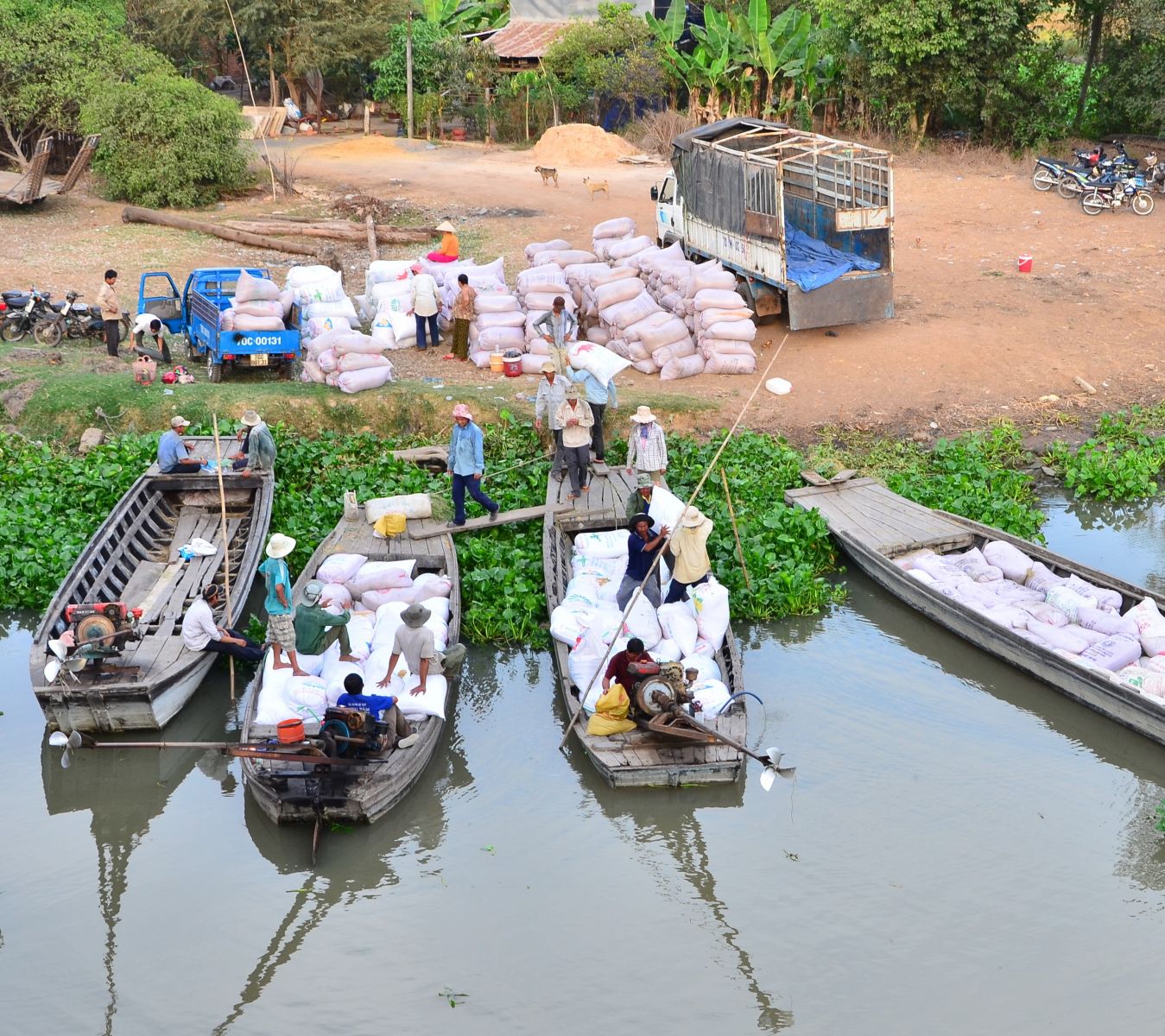 Thương lái thu mua lúa của nông dân. Ảnh: Đ.H.T