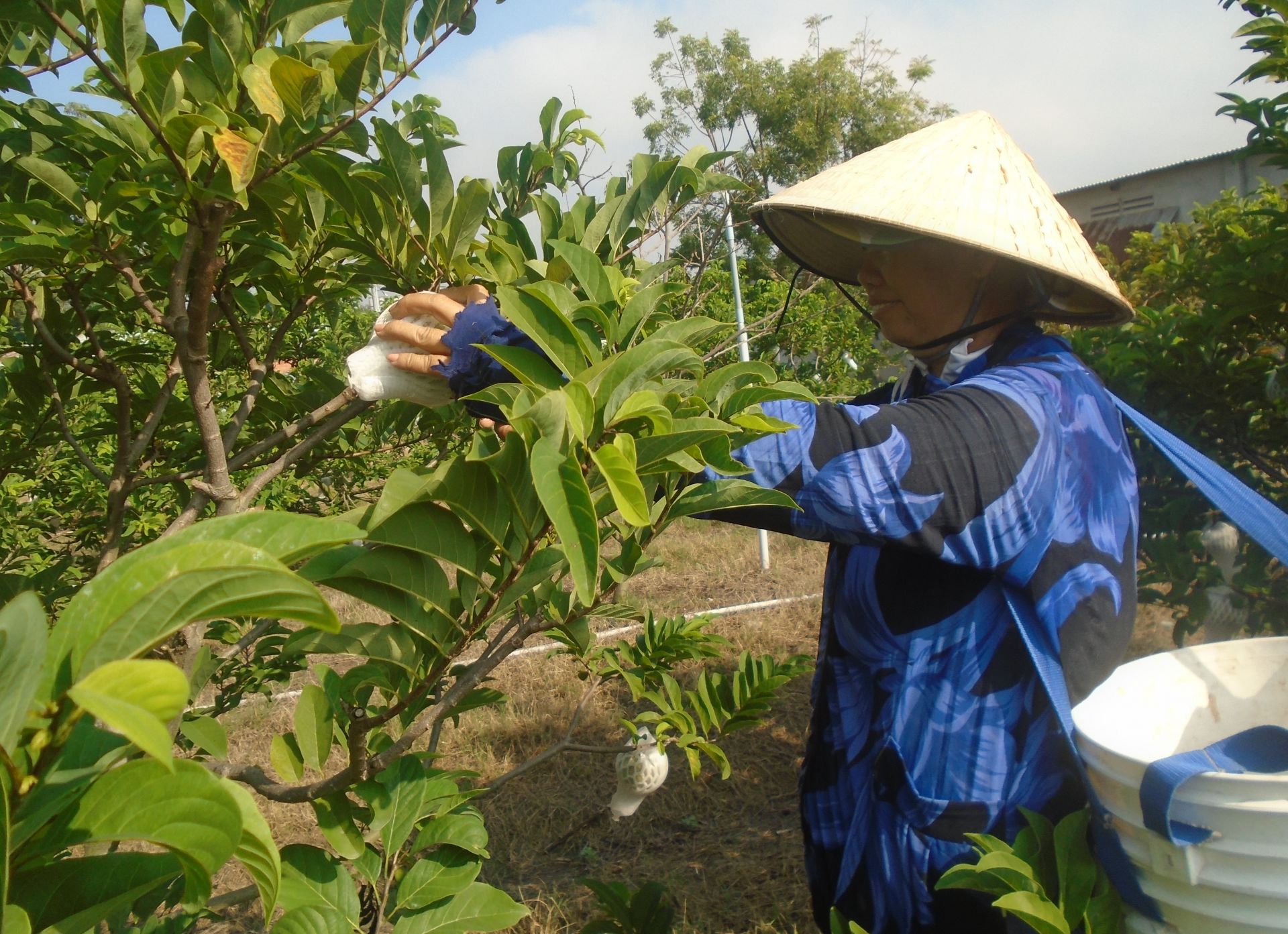 Thu hoạch mãng cầu (ảnh chụp tại HTX mãng cầu Thạnh Tân, thành phố Tây Ninh).