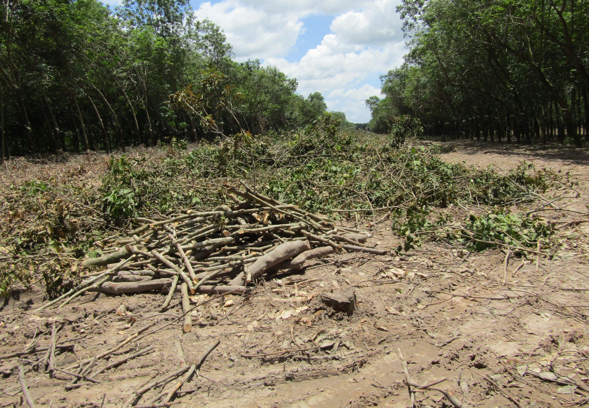 Xử lý cây cao su để trồng rừng theo Quyết định số 1573 của UBND tỉnh, tại ấp Đồng Kèn 1, xã Tân Thành (Tân Châu).