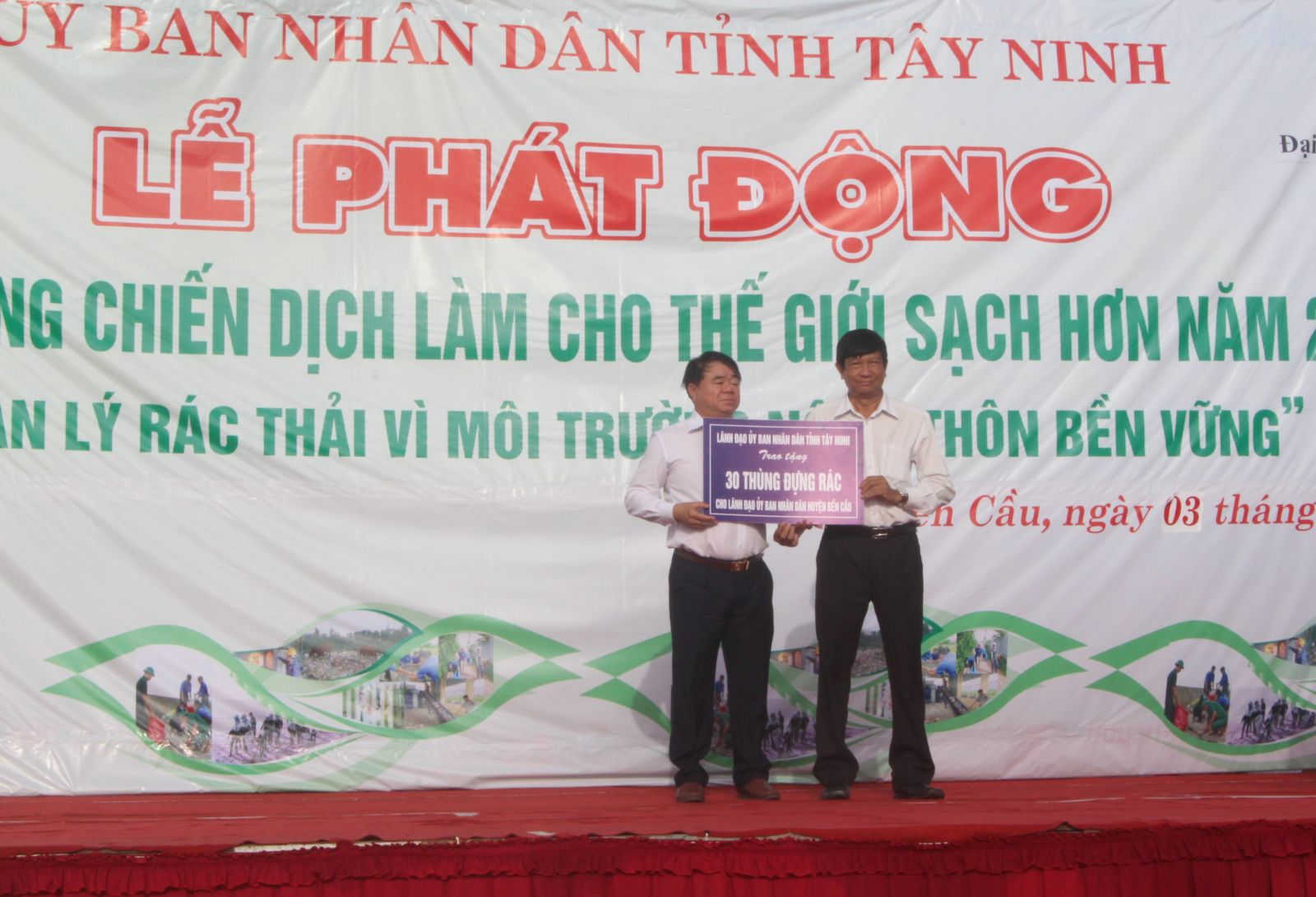 Trao biểu trưng 30 thùng rác cho UBND huyện Bến Cầu.