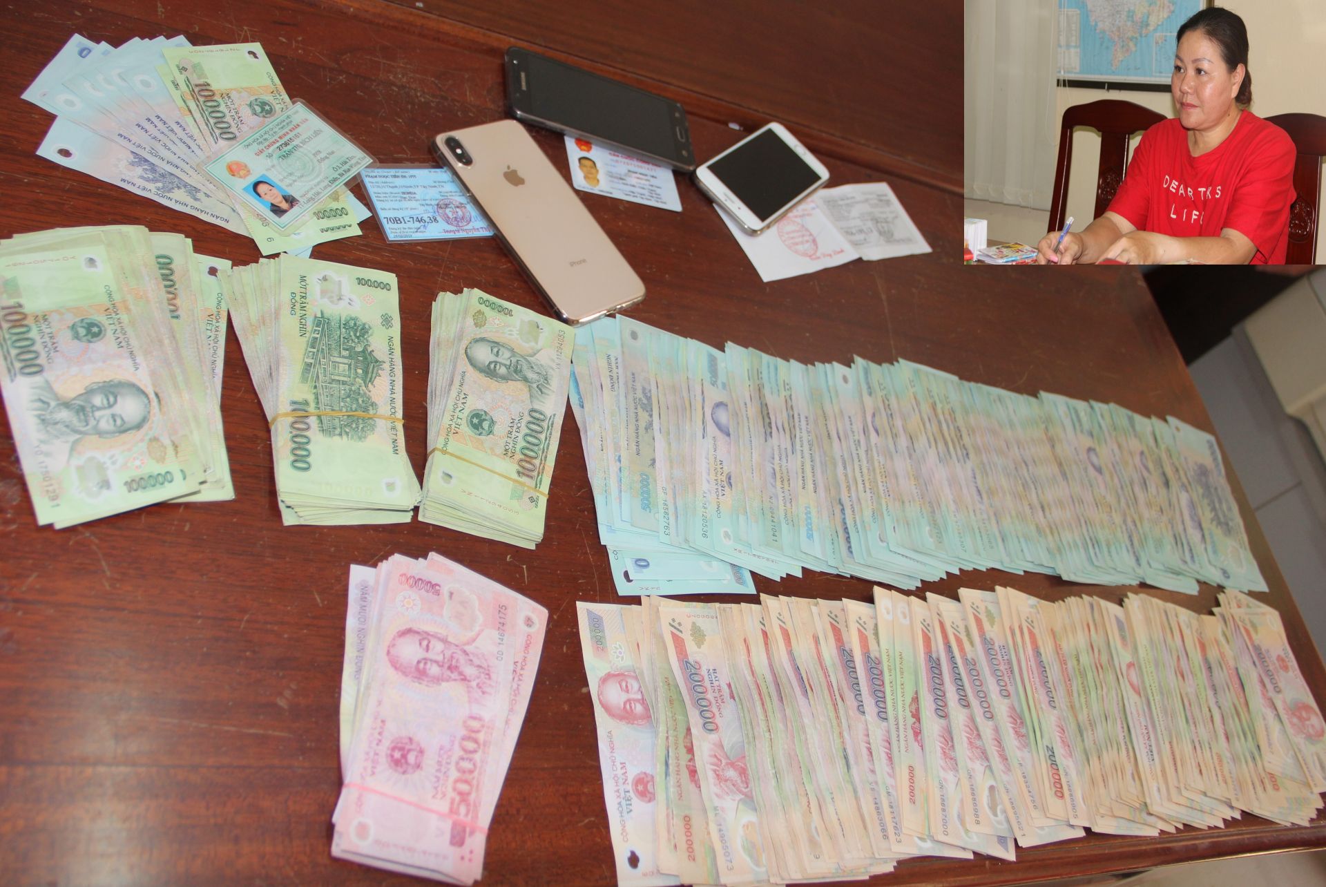 Trần Thị Bích Liên và tang vật.