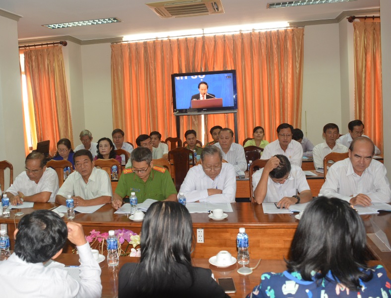 Các đại biểu tham dự hội nghị trực tuyến tại đầu cầu Tây Ninh.