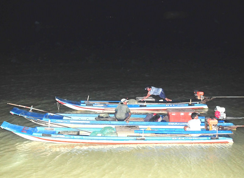 Ngư dân hồ Dầu Tiếng vào bờ tránh bão.