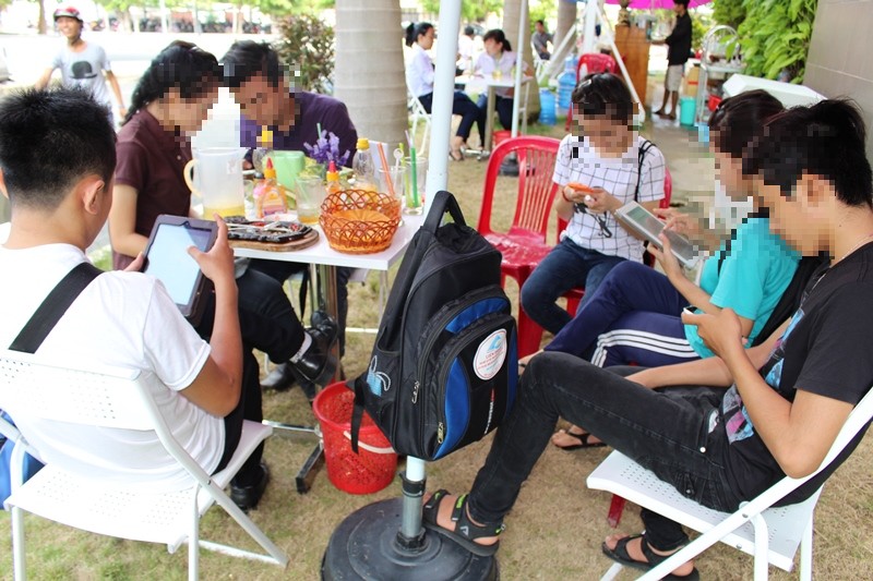 Dễ dàng thấy bạn trẻ mê mẩn với máy tính bảng hay điện thoại thông minh. (Ảnh minh hoạ, chụp tại Trung tâm Học tập, sinh hoạt thanh thiếu nhi).