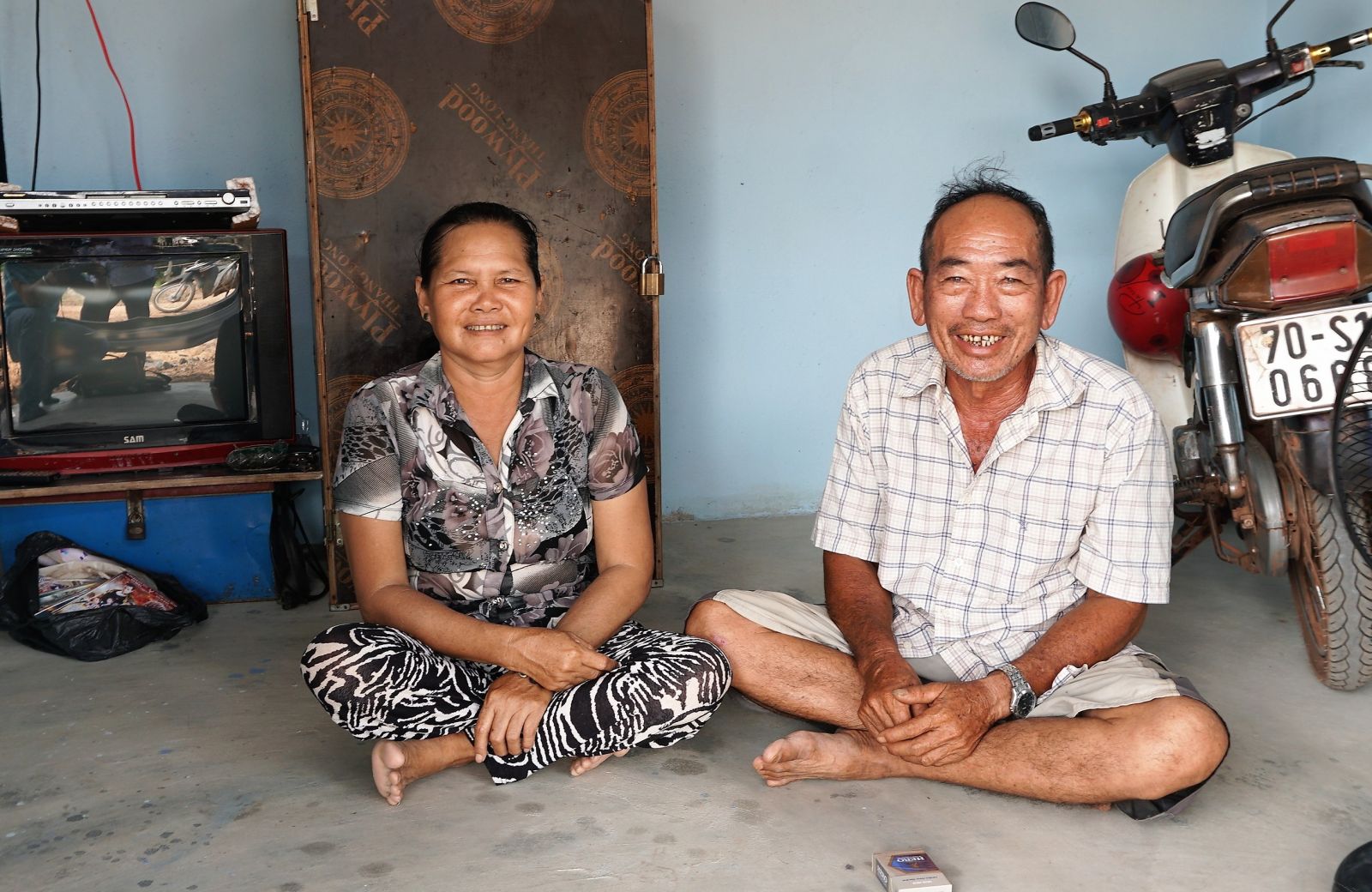 Vợ chồng ông Lê Văn Kiểng với niềm vui nhà mới.