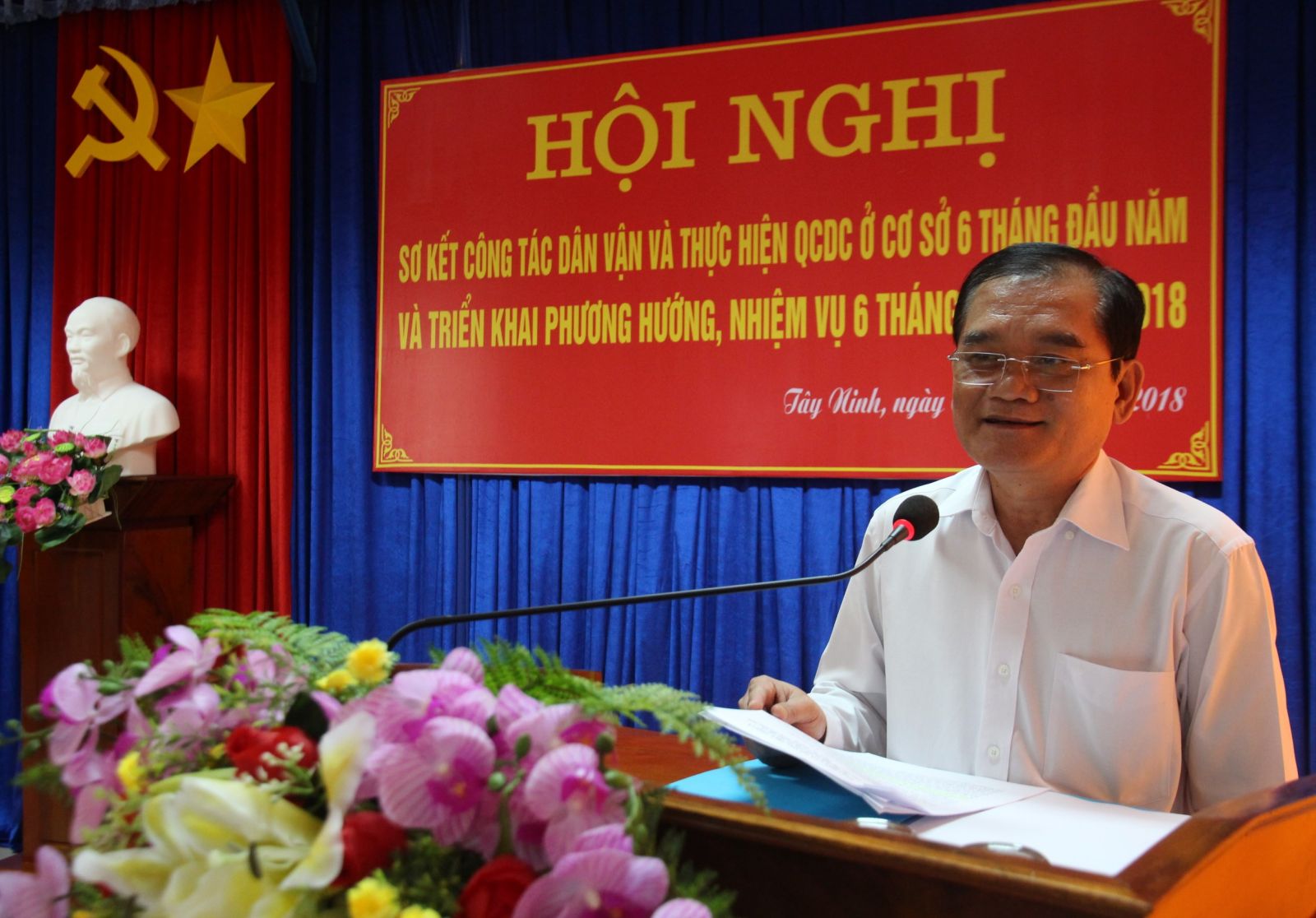 Ban Dân vận Tỉnh uỷ vừa sơ kết công tác dân vận, kết quả xây dựng và thực hiện quy chế dân chủ cơ sở 6 tháng đầu năm. Ðến dự có Phó Bí thư Thường trực Tỉnh uỷ Nguyễn Minh Tân.