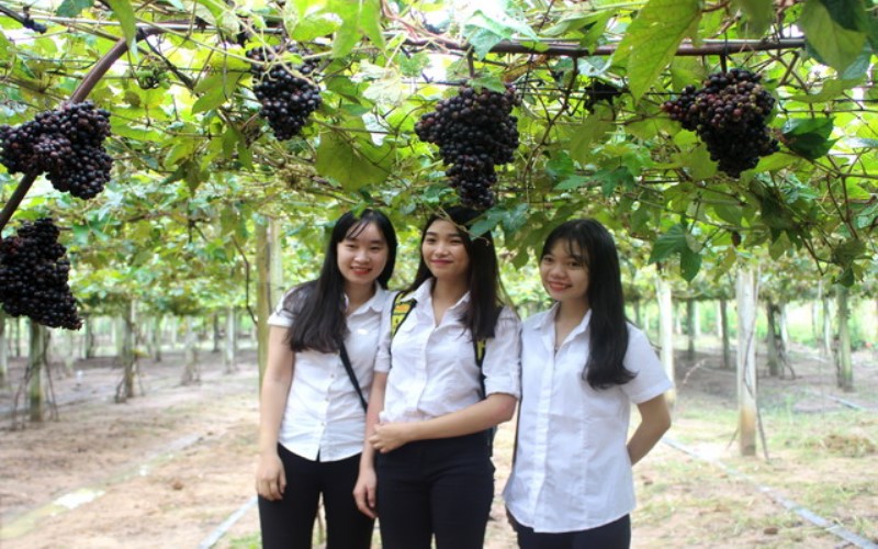 Các bạn trẻ hào hứng chụp ảnh với nho rừng.