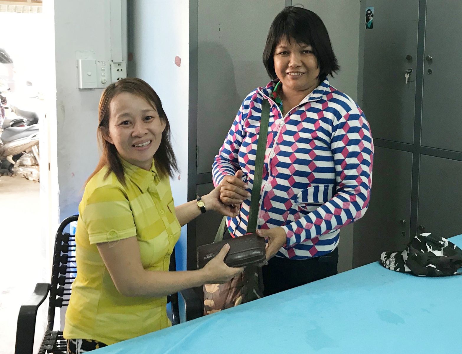 Chị Thời (bên phải) trả lại tài sản cho chị Nguyễn Thị Thảo.