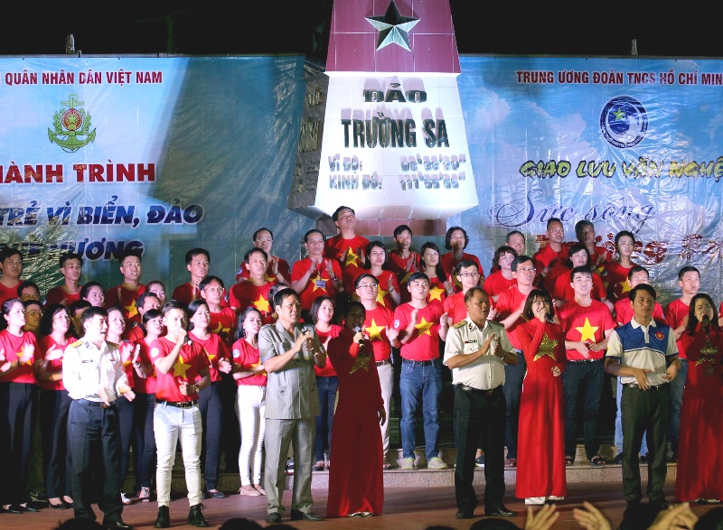 Tiết mục văn nghệ trong hành trình tuổi trẻ vì biển đảo quê hương.