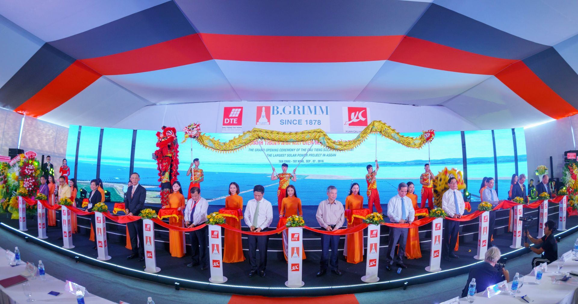 Thực hiện nghi thức cắt băng khánh thành Nhà máy điện mặt trời Dầu Tiếng 1, 2. Ảnh: Dương Đức Kiên