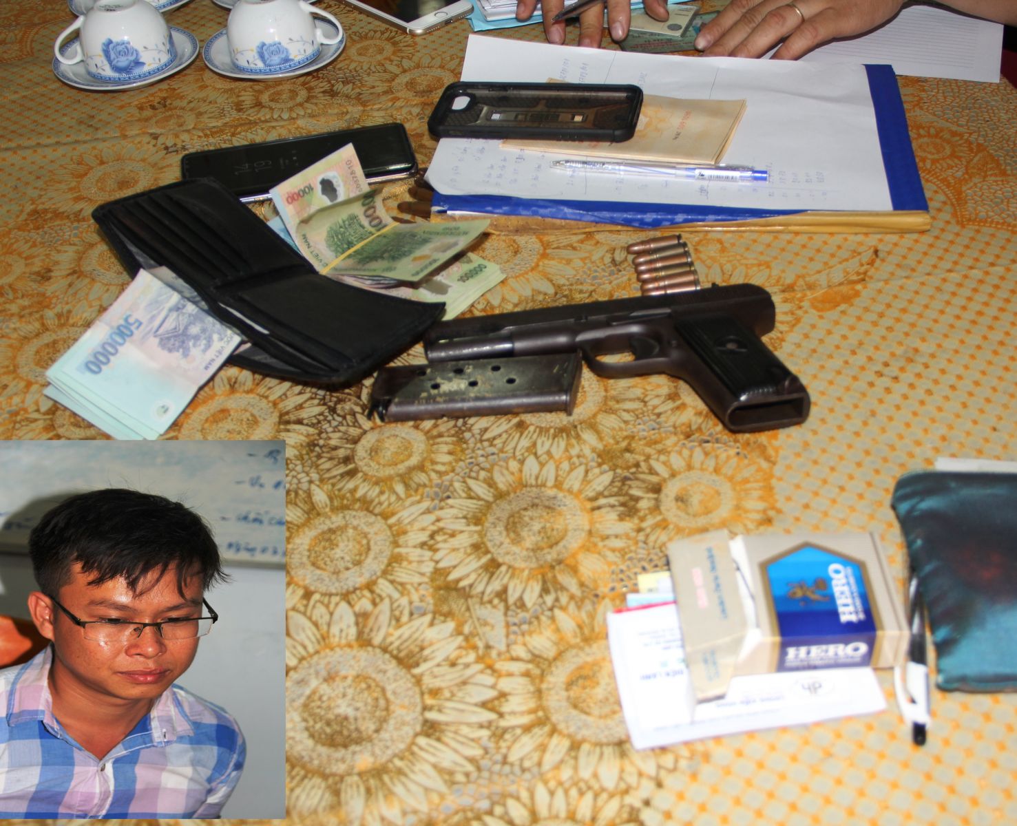 Tang vật Công an thu giữ và Võ Lê Duy (ảnh nhỏ).