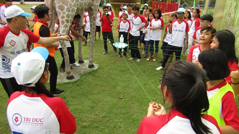 Các em học sinh hào hứng tham gia hoạt động teambuilding.