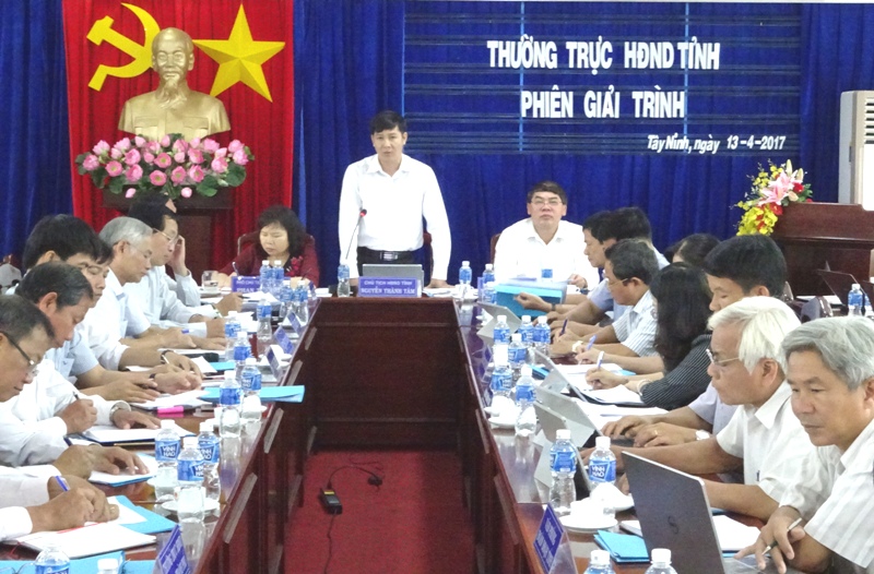 Ông Nguyễn Thành Tâm- Phó Bí thư Tỉnh uỷ, Chủ tịch HĐND tỉnh phát biểu tại phiên giải trình.