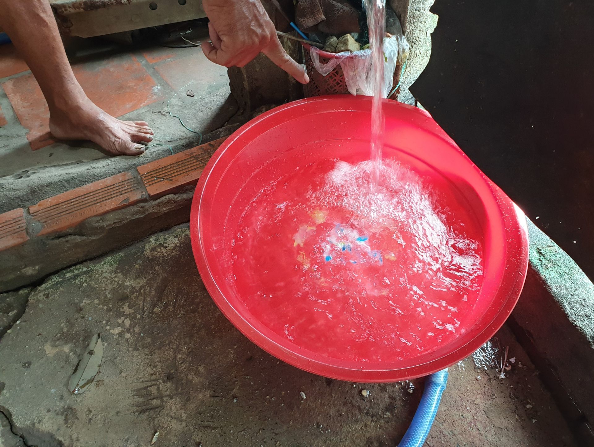 Nước ngầm bơm lên dù vẫn trong nhưng sủi bọt trắng, có mùi hôi tanh.