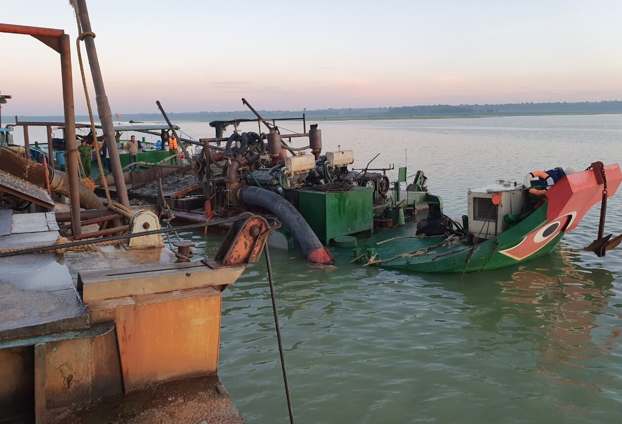 Bắt quả tang các tàu hút cát trái phép tại hiện trường. Ảnh: Tuyết Nhung