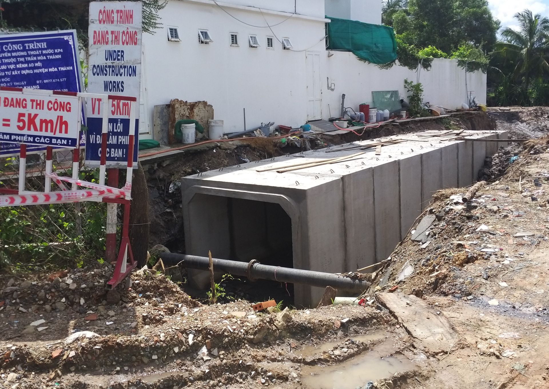 Triển khai dự án lắp hệ thống cống hộp tại hạ lưu kênh Ao Hồ sẽ giúp thoát nước nhanh chóng hơn trên đường Lý Thường Kiệt, huyện Hoà Thành.
