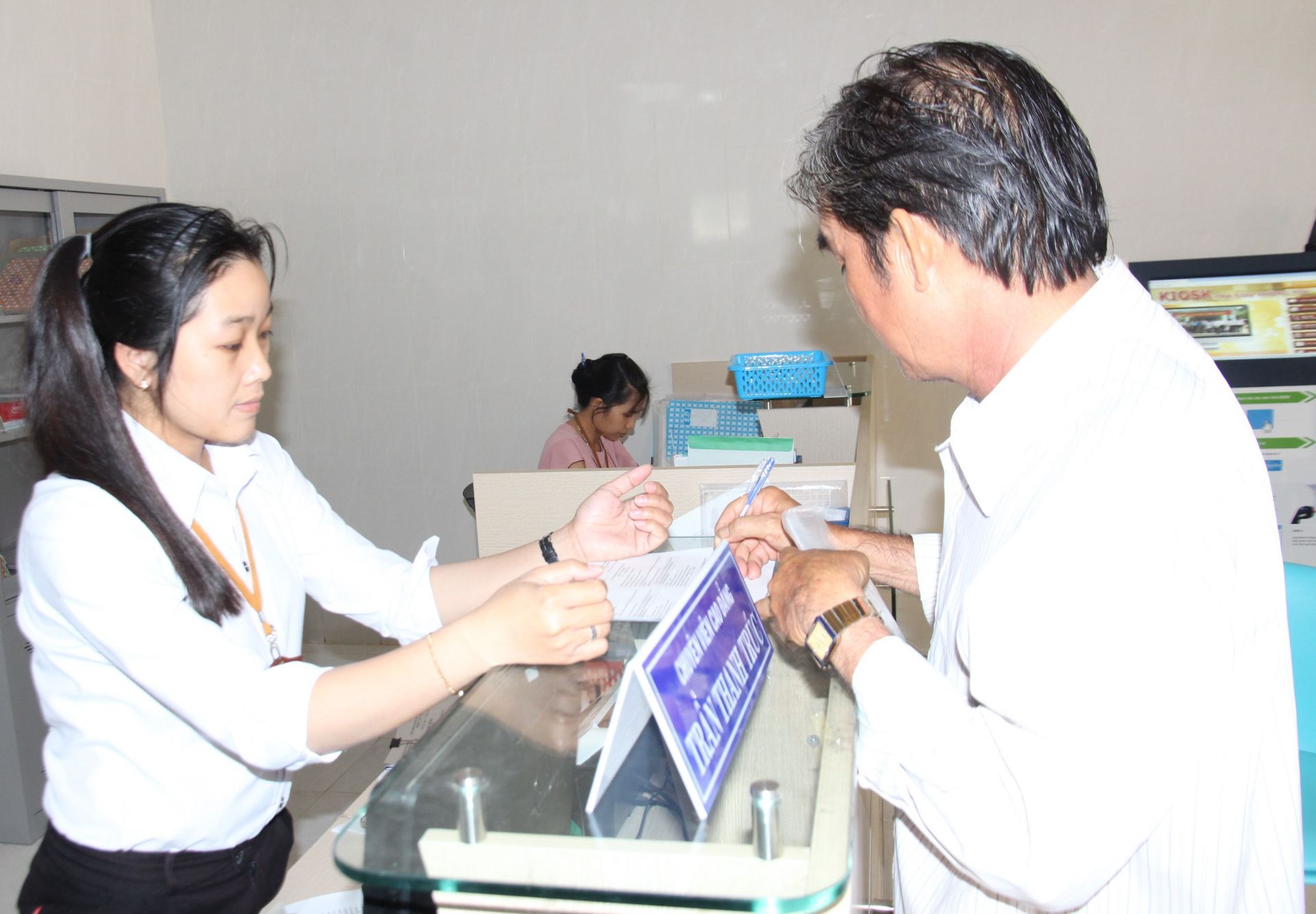 Người dân đến bộ phận Một cửa của huyện Bến Cầu để giải quyết TTHC.