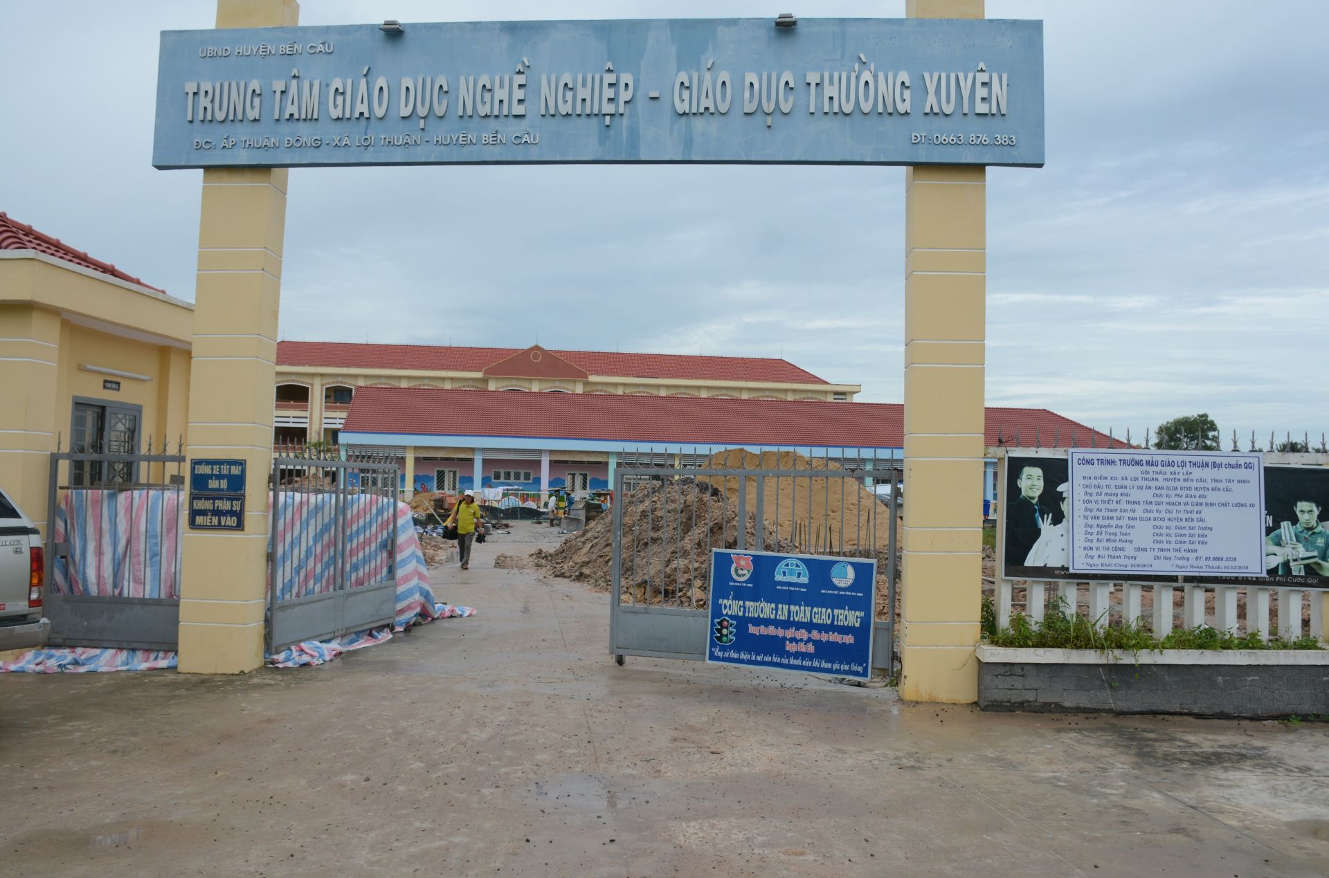 Trường mầm non án ngữ trước mặt Trung tâm GDNN-GDTX Bến Cầu.