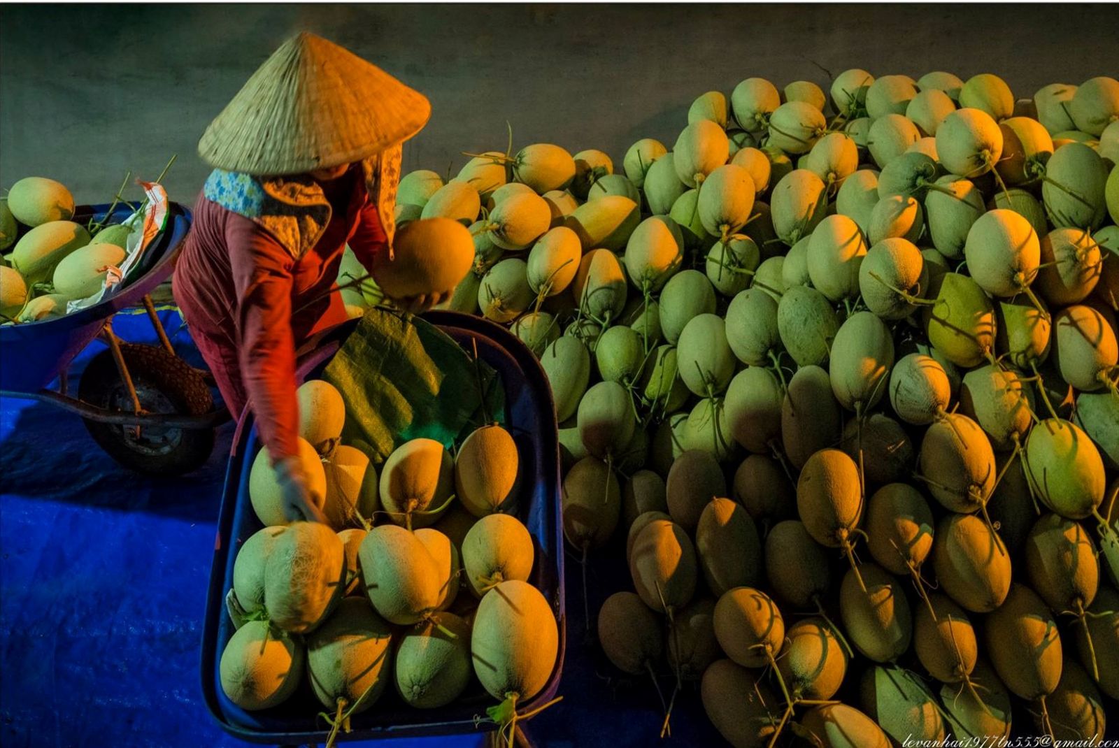 Thu hoạch dưa lưới. Ảnh: Lê Văn Hải