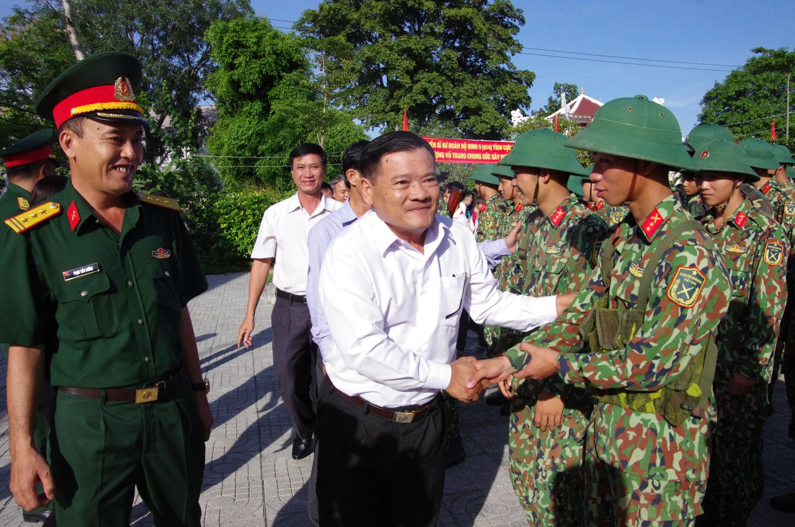 Trưởng ban Dân vận Tỉnh uỷ, Chủ tịch UBMTTQ Việt Nam tỉnh Nguyễn Văn Hợp và lãnh đạo Sư đoàn 5 cùng địa phương tại lễ ra quân làm công tác dân vận tại xã Thái Bình, huyện Châu Thành. Ảnh: Xuân Thu