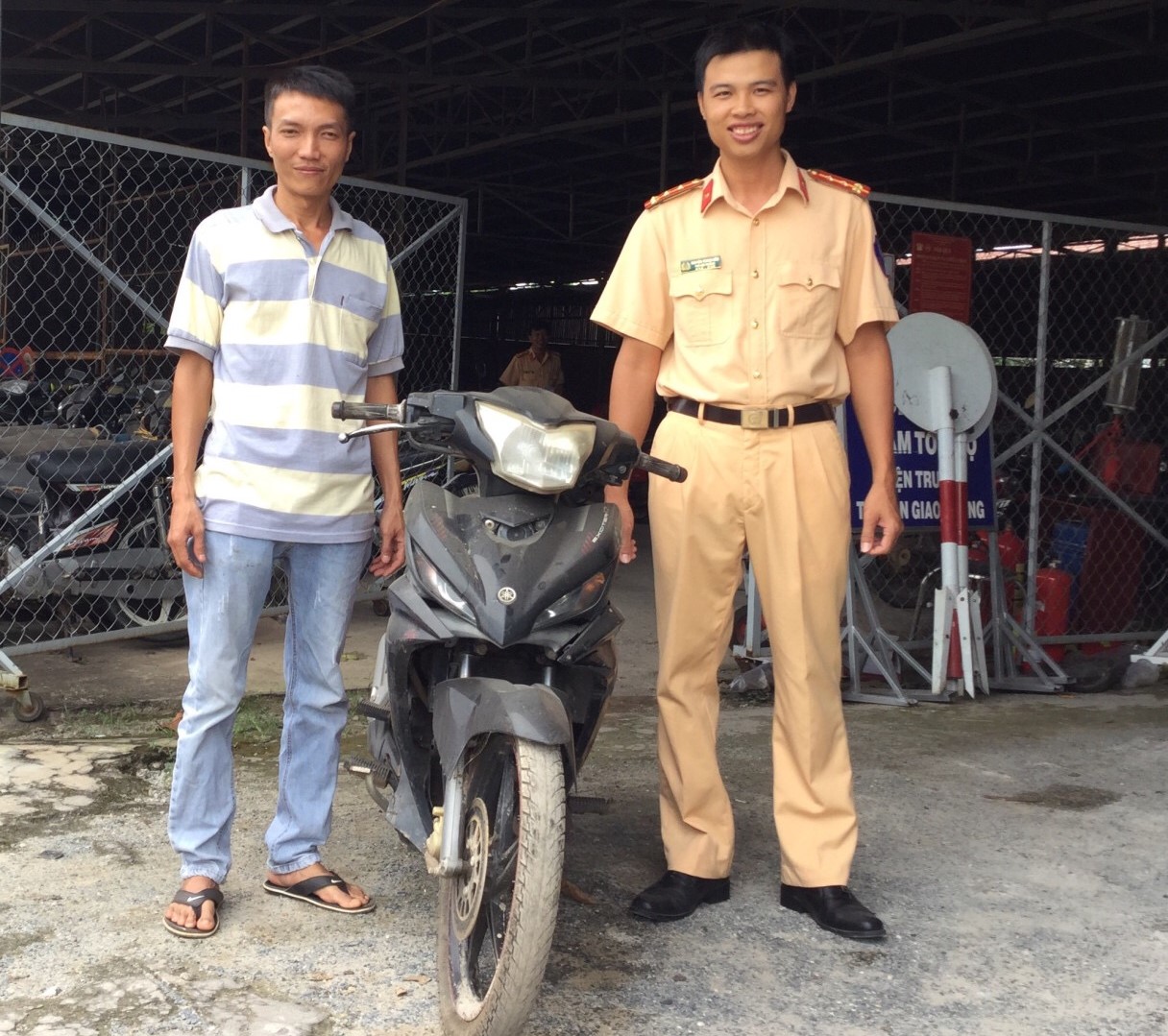 Cán bộ Phòng CSGT CATN trao trả xe cho anh Lê Phúc Hậu.