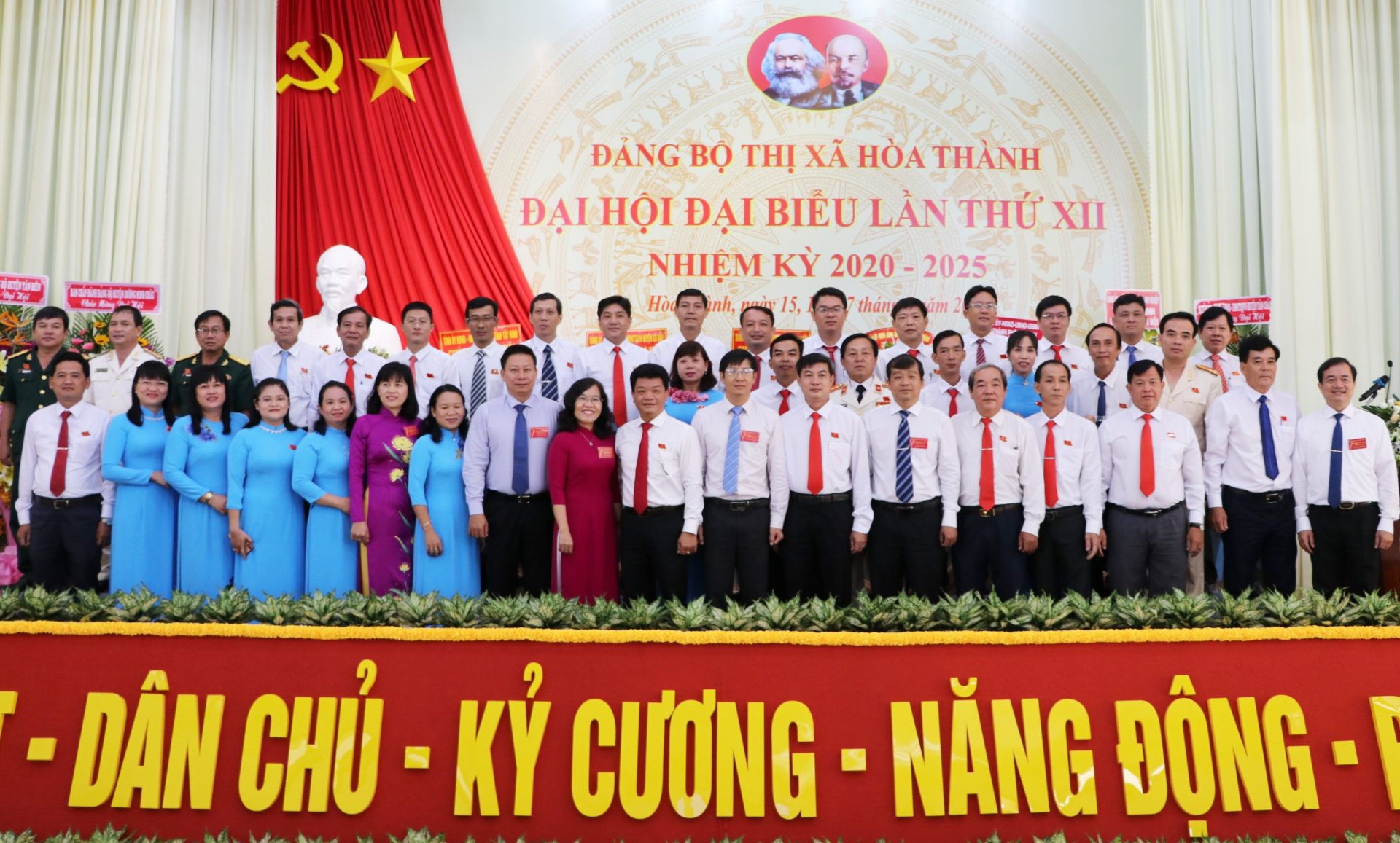 Ban Chấp hành Đảng bộ thị xã Hoà Thành nhiệm kỳ 2020-2025 ra mắt Đại hội. Ảnh: Đức An