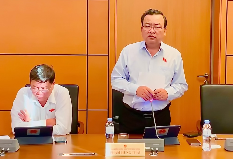 Đại biểu Phạm Hùng Thái- Phó Bí thư Thường trực Tỉnh uỷ, Trưởng Đoàn ĐBQH tỉnh Tây Ninh phát biểu tại buổi thảo luận tổ.