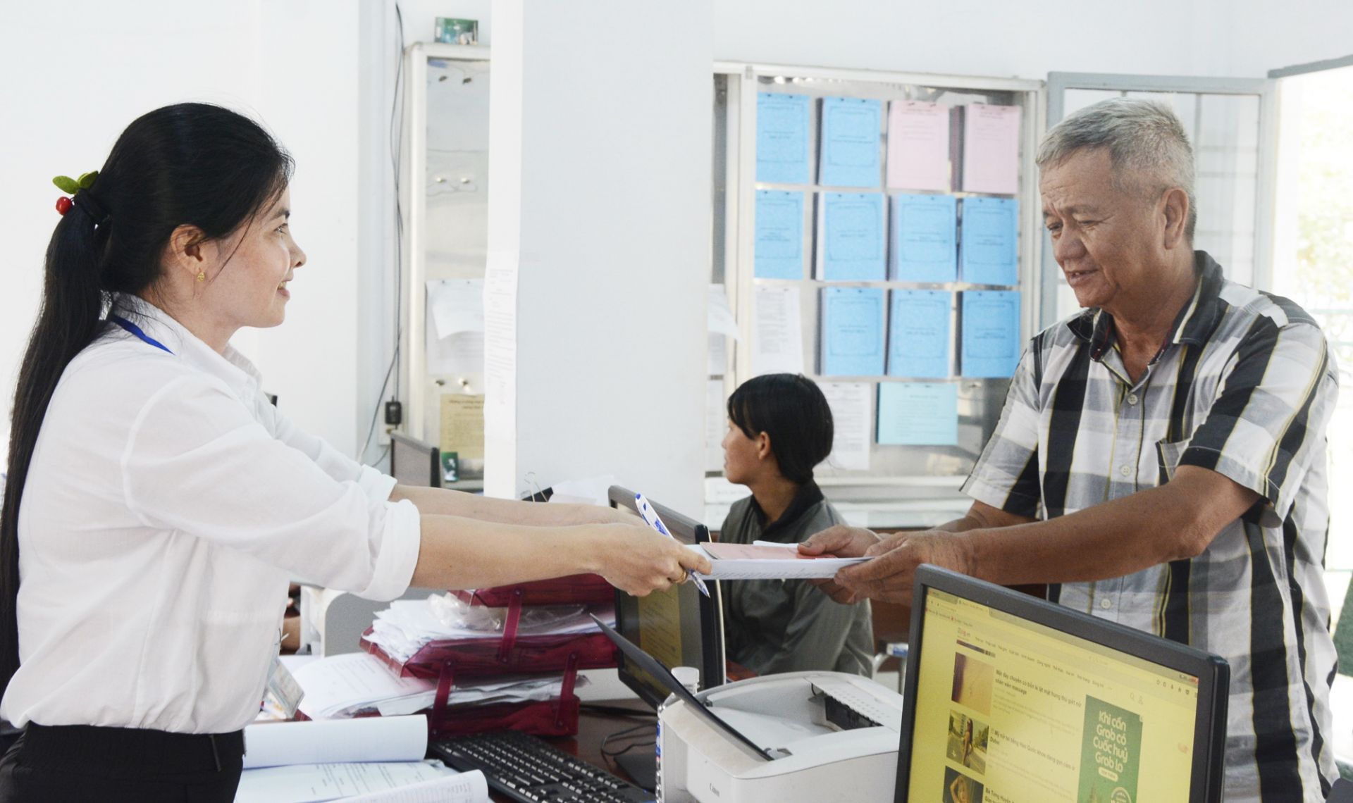 Công chức UBND xã Phước Chỉ (thị xã Trảng Bàng) trả kết quả giải quyết thủ tục hành chính cho người dân.