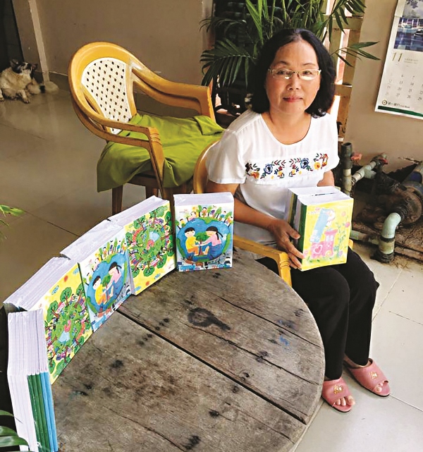 Cô Hiệp chuẩn bị sách vở tặng cho học trò nghèo.