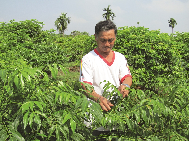 Ông Cảnh bên vườn rau.