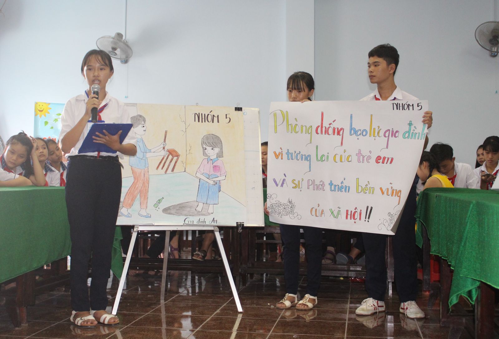 Các em học sinh tham gia chương trình Diễn đàn trẻ em với chủ đề “Trẻ em với vấn đề phòng chống bạo lực, xâm hại trẻ em” do Sở Lao động - Thương binh và Xã hội tổ chức.