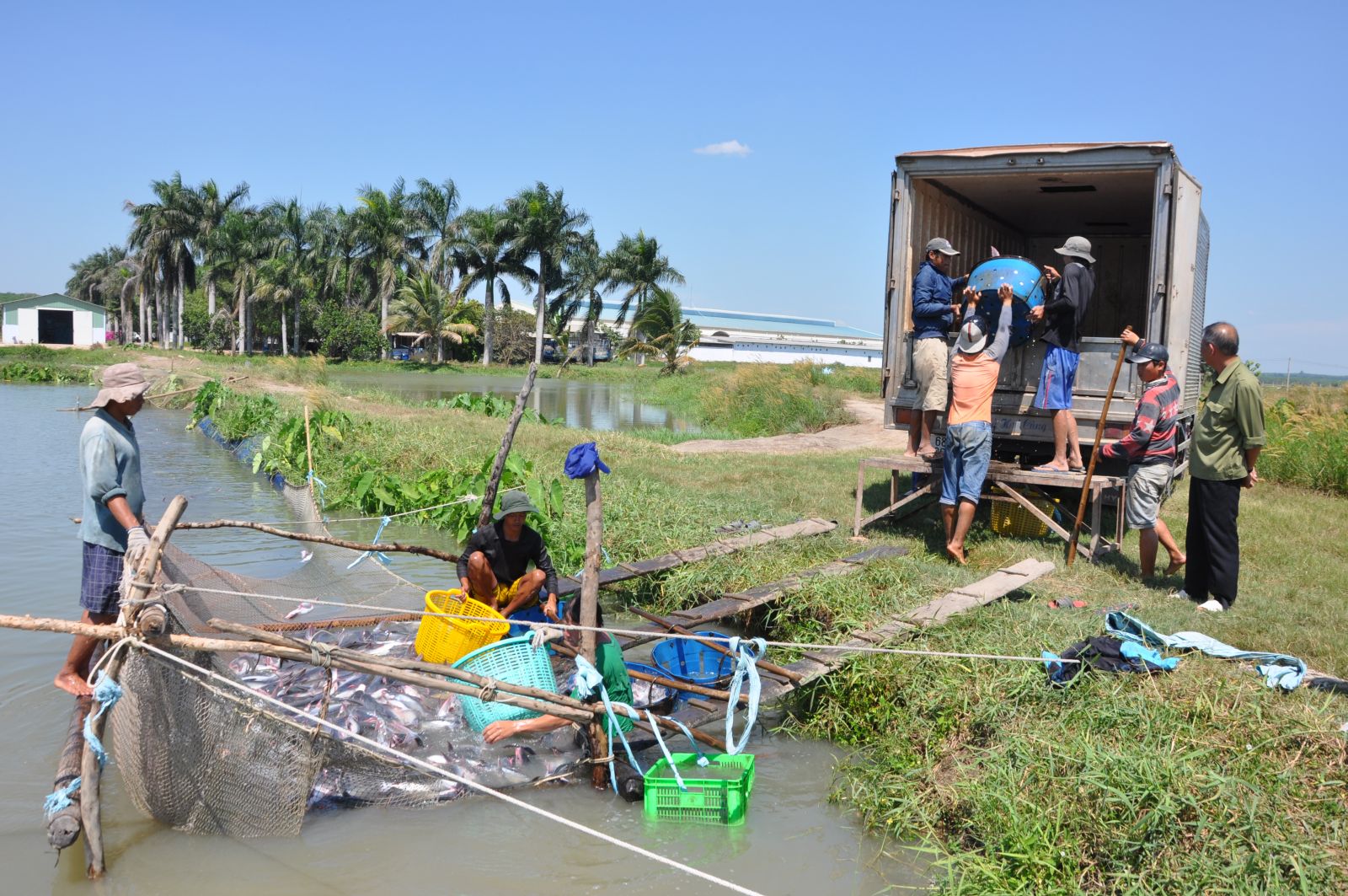 Thu hoạch cá tra ở Công ty Miền Đông.