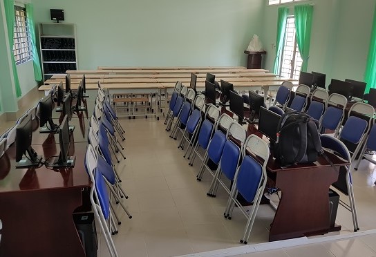 Phòng tin học và ngoại ngữ ghép chung tại trường THCS Tây Sơn (xã Mỏ Công, huyện Tân Biên).