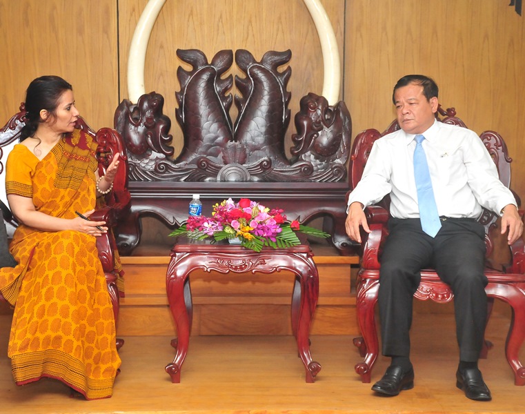 Ông Phạm Văn Tân- Chủ tịch UBND tỉnh Tây Ninh tiếp đoàn Tổng Lãnh sự quán Ấn Ðộ đến chào xã giao.