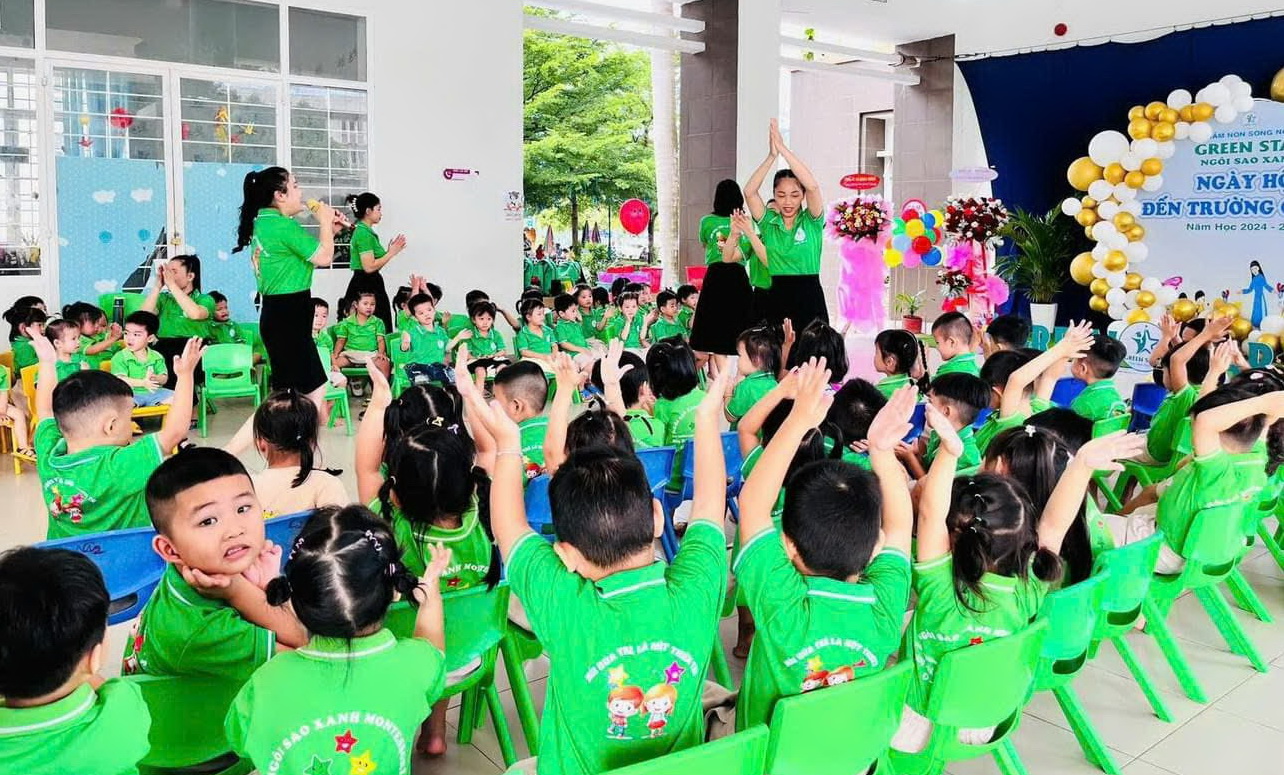 Học sinh Trường mầm non Ngôi Sao Xanh (trường ngoài công lập) ngày khai giảng năm học 2024 – 2025.