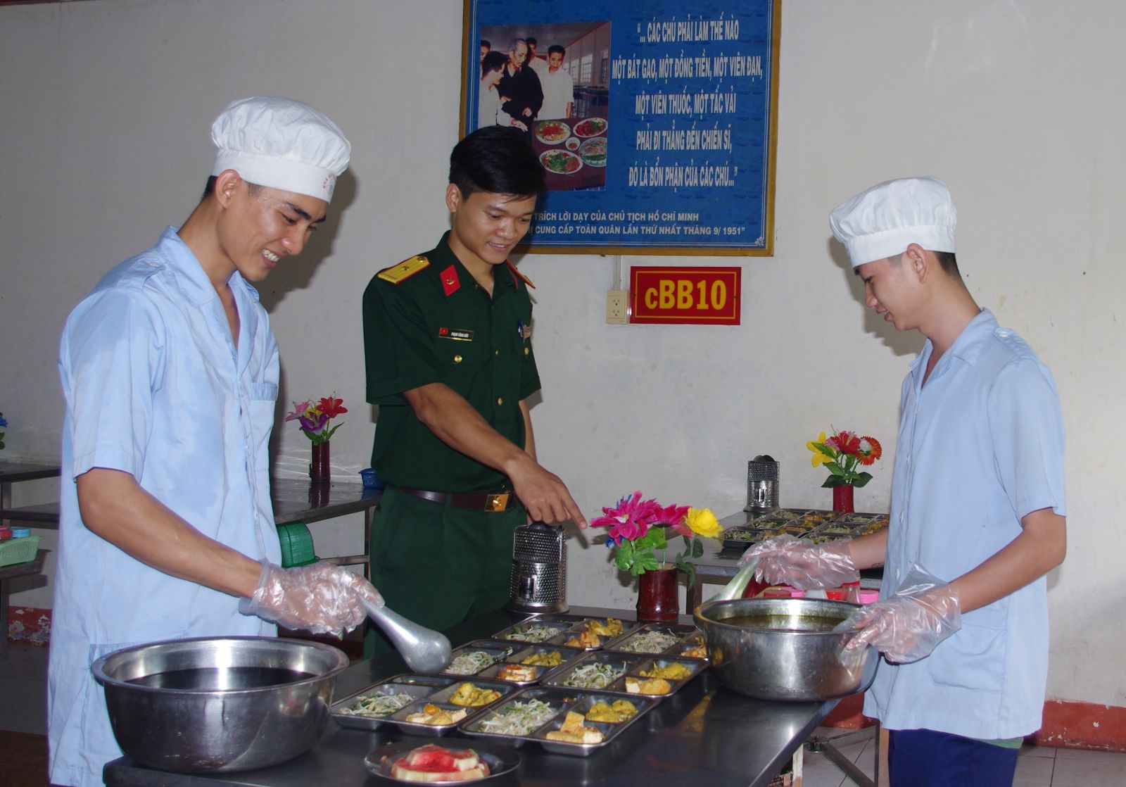 Chiến sĩ nuôi quân Sư đoàn 5 chuẩn bị bữa ăn cho bộ đội.