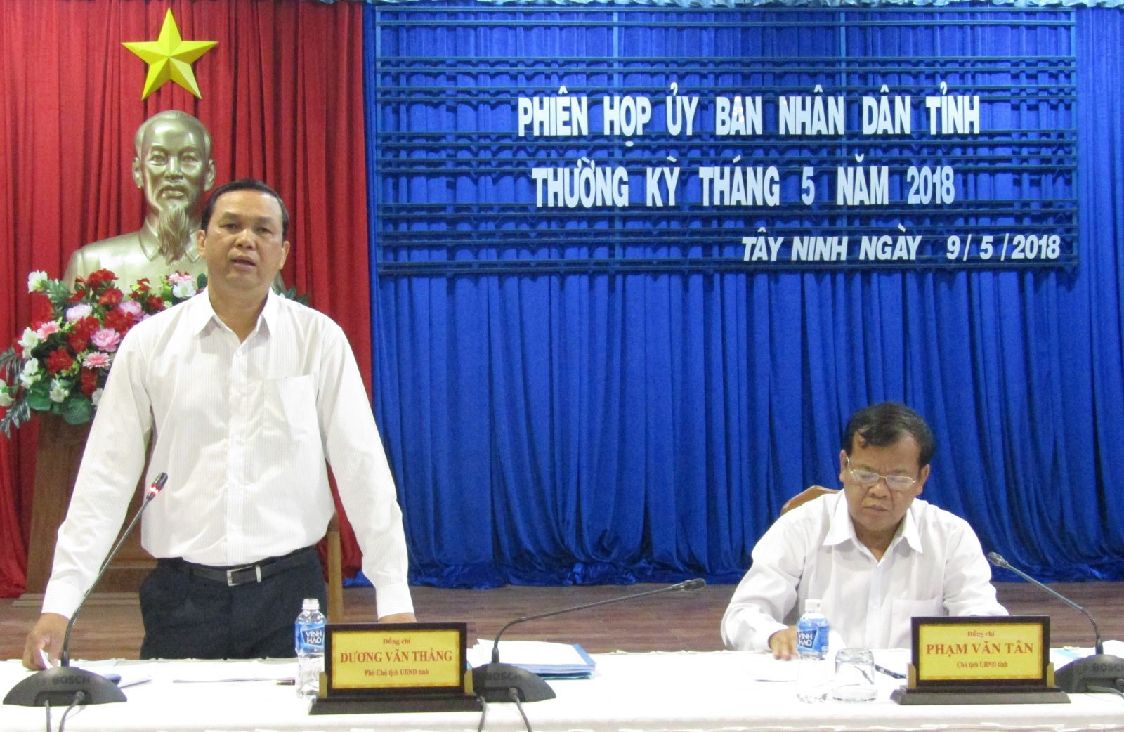 Sáng ngày 9.5, UBND tỉnh tổ chức phiên họp thường kỳ tháng 5.2018, cho ý kiến về hai nội dung: việc ban hành Nghị quyết về việc chi, mức chi cho công tác quản lý Nhà nước về thi hành pháp luật xử lý vi phạm hành chính trên địa bàn tỉnh; báo cáo kết quả các chỉ số PCI, PAPI và chỉ số cải cách hành chính (PAR INDEX) năm 2017 của Tây Ninh. Chủ tịch UBND tỉnh Phạm Văn Tân và Phó Chủ tịch Dương Văn Thắng chủ trì hội nghị.