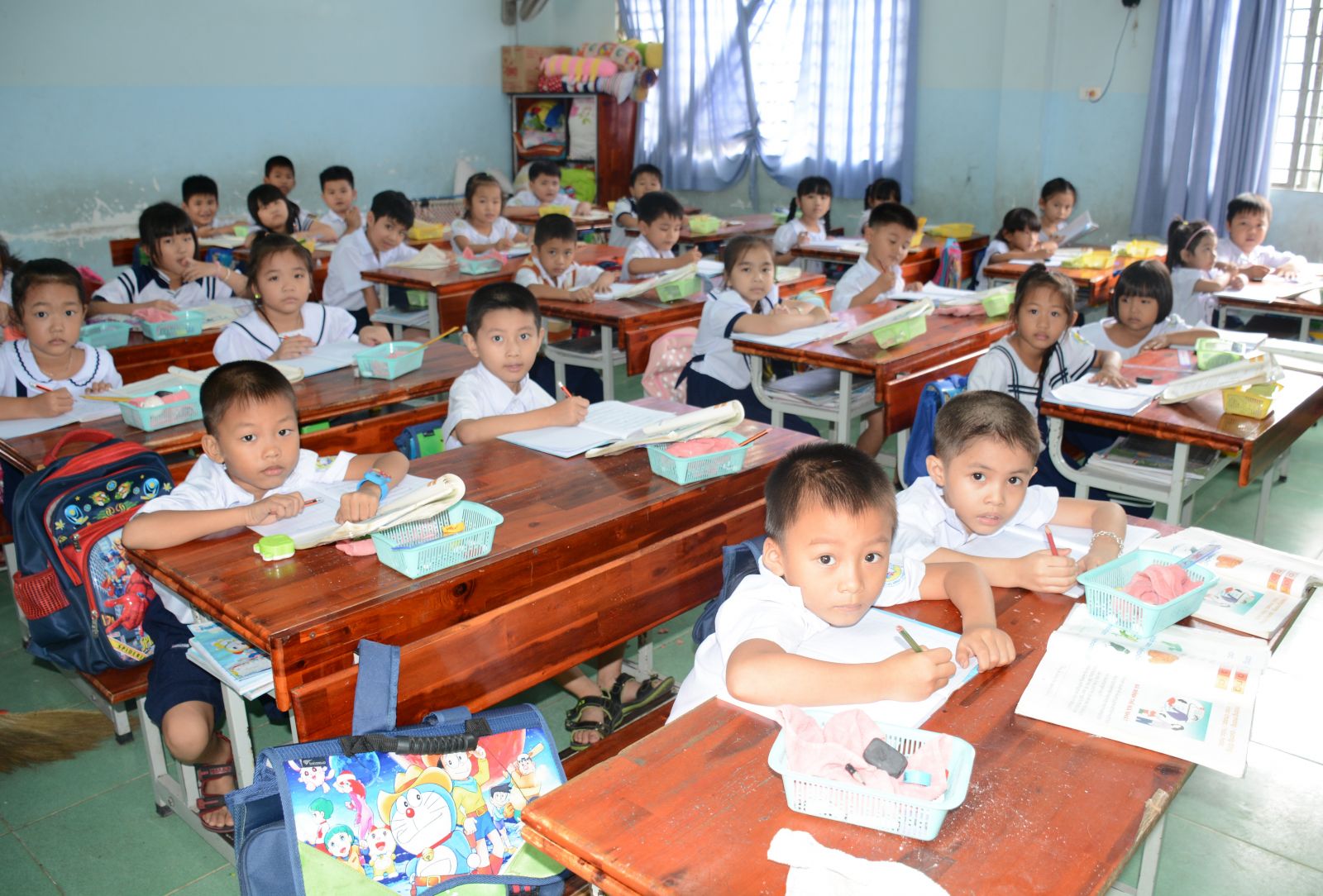 Trong giờ học ở Trường tiểu học thị trấn Dương Minh Châu- một trường đạt chuẩn quốc gia.