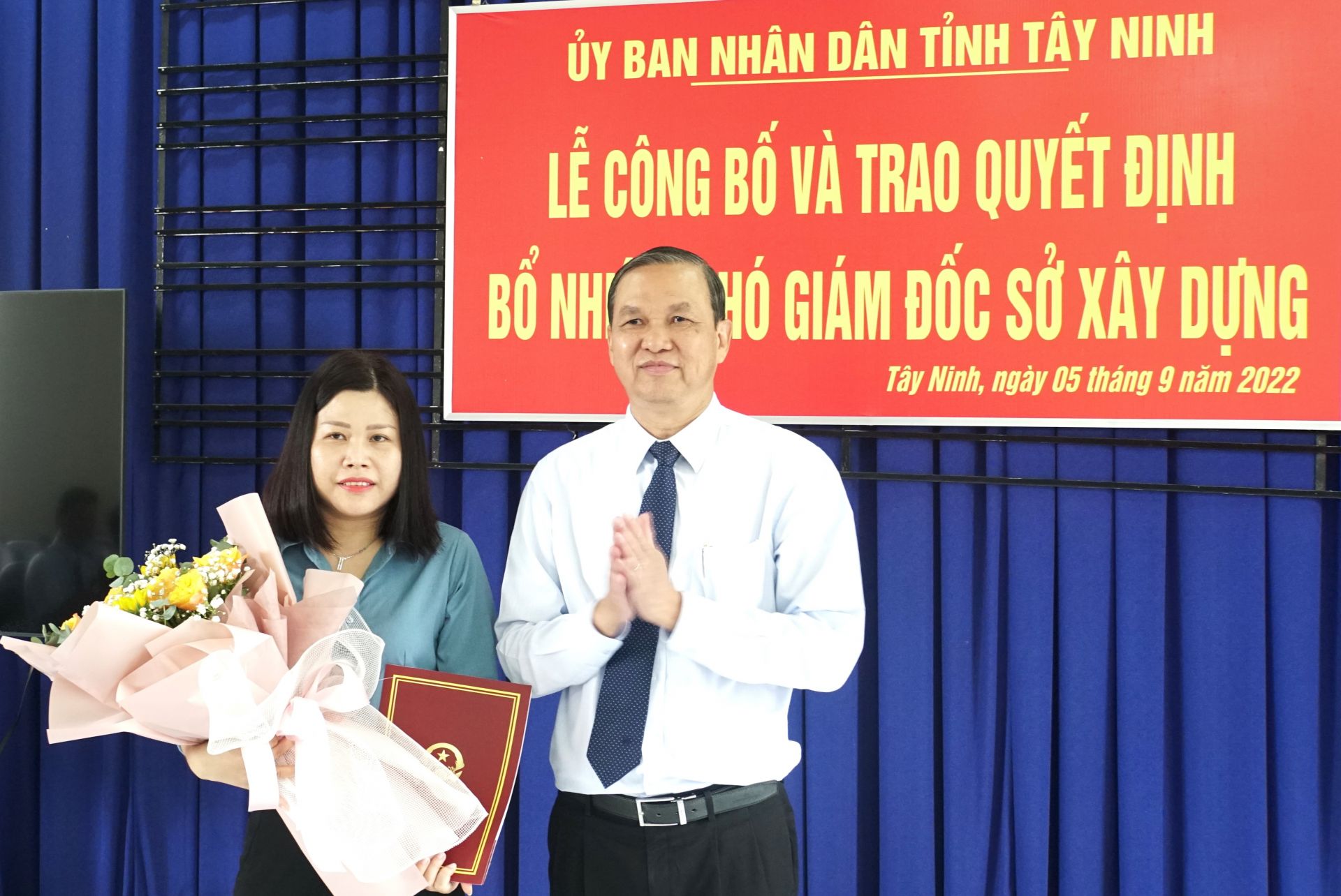 Phó Chủ tịch UBND tỉnh Dương Văn Thắng trao quyết định bổ nhiệm chức vụ Phó Giám đốc Sở Xây dựng cho bà Nguyễn Thị Thuý Nga. Ảnh minh hoạ