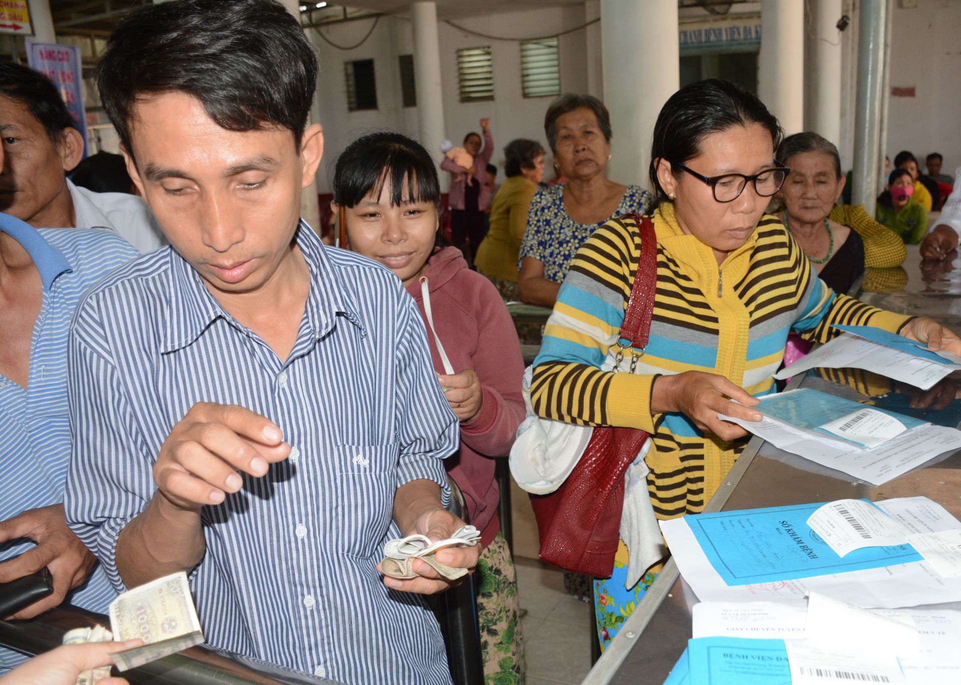 Người có thẻ BHYT làm thủ tục khám bệnh tại Bệnh viện Đa khoa Tây Ninh.