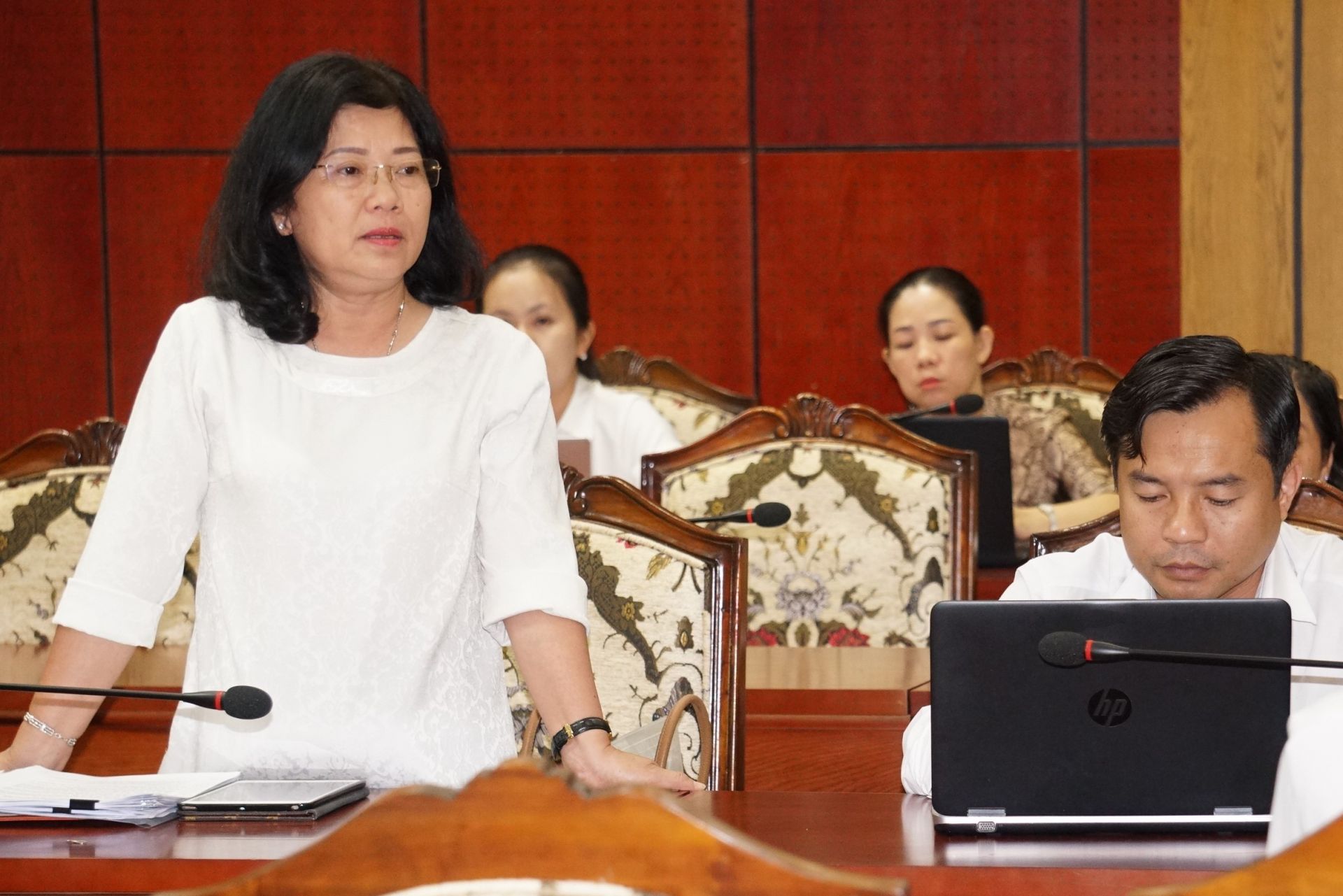 Đại biểu Nguyễn Thị Hiếu-Giám đốc Sở Tài nguyên & Môi trường phát biểu tại phiên thảo luận.