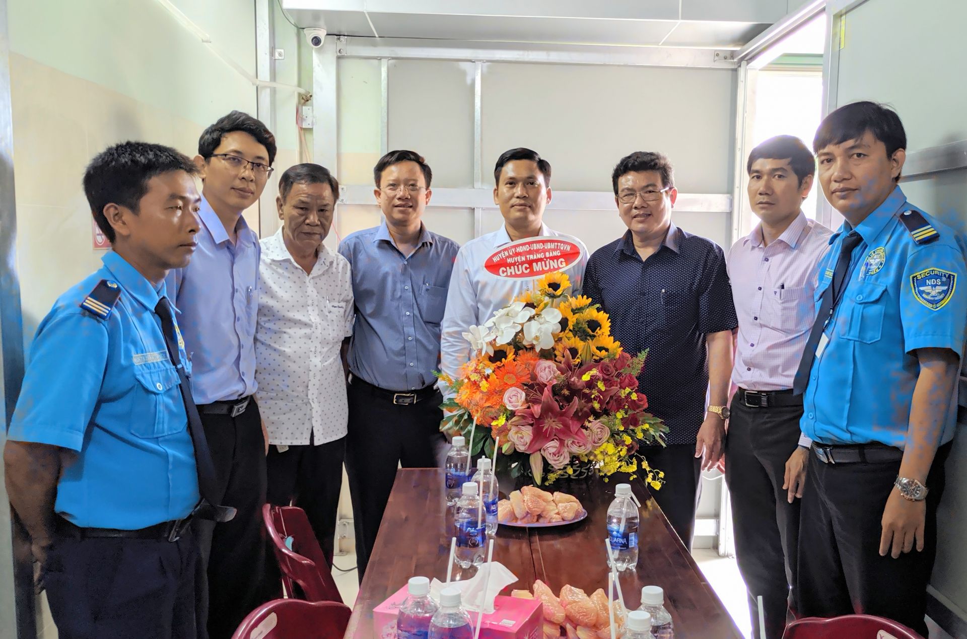 Lãnh đạo huyện Trảng Bàng thăm và tặng hoa chúc mừng tại chi nhánh Công ty TNHH dịch vụ bảo vệ Ngày và Đêm.