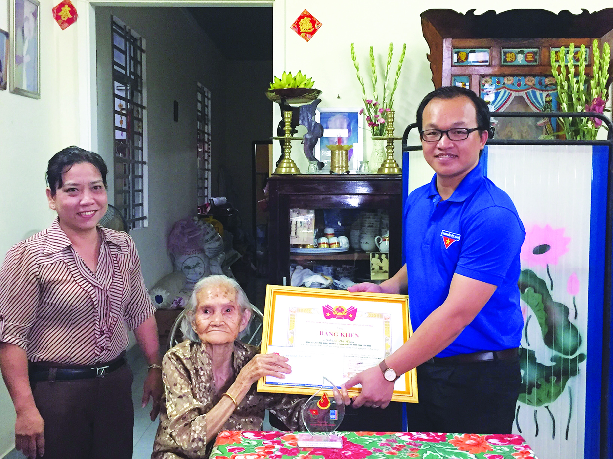 Cụ Màng nhận giải thưởng Tình nguyện quốc gia 2017 của Trung ương Ðoàn.