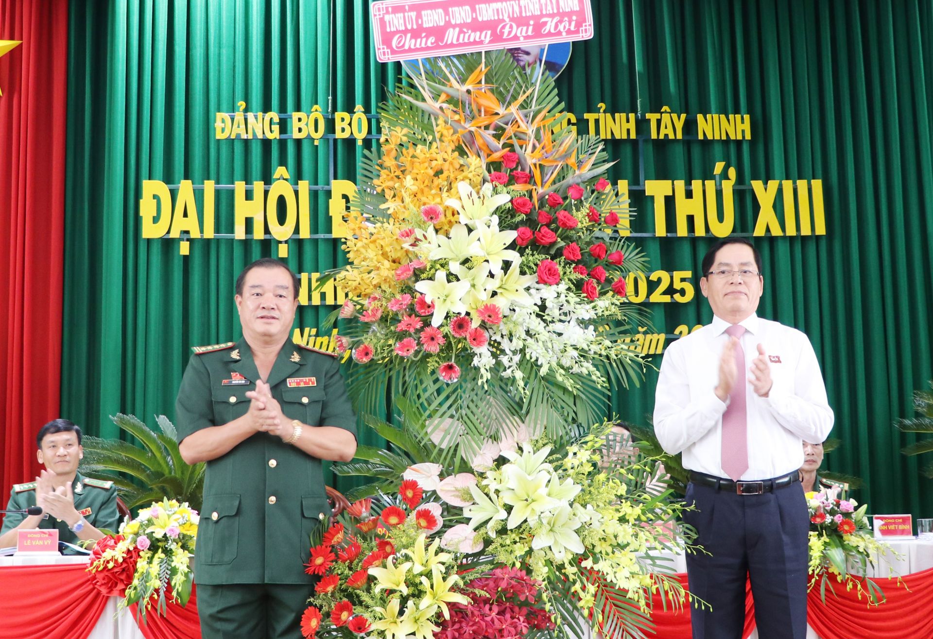 Bí thư Tỉnh uỷ Phạm Viết Thanh tặng hoa chúc mừng Đại hội BĐBP tỉnh nhiệm kỳ 2020-2025.
