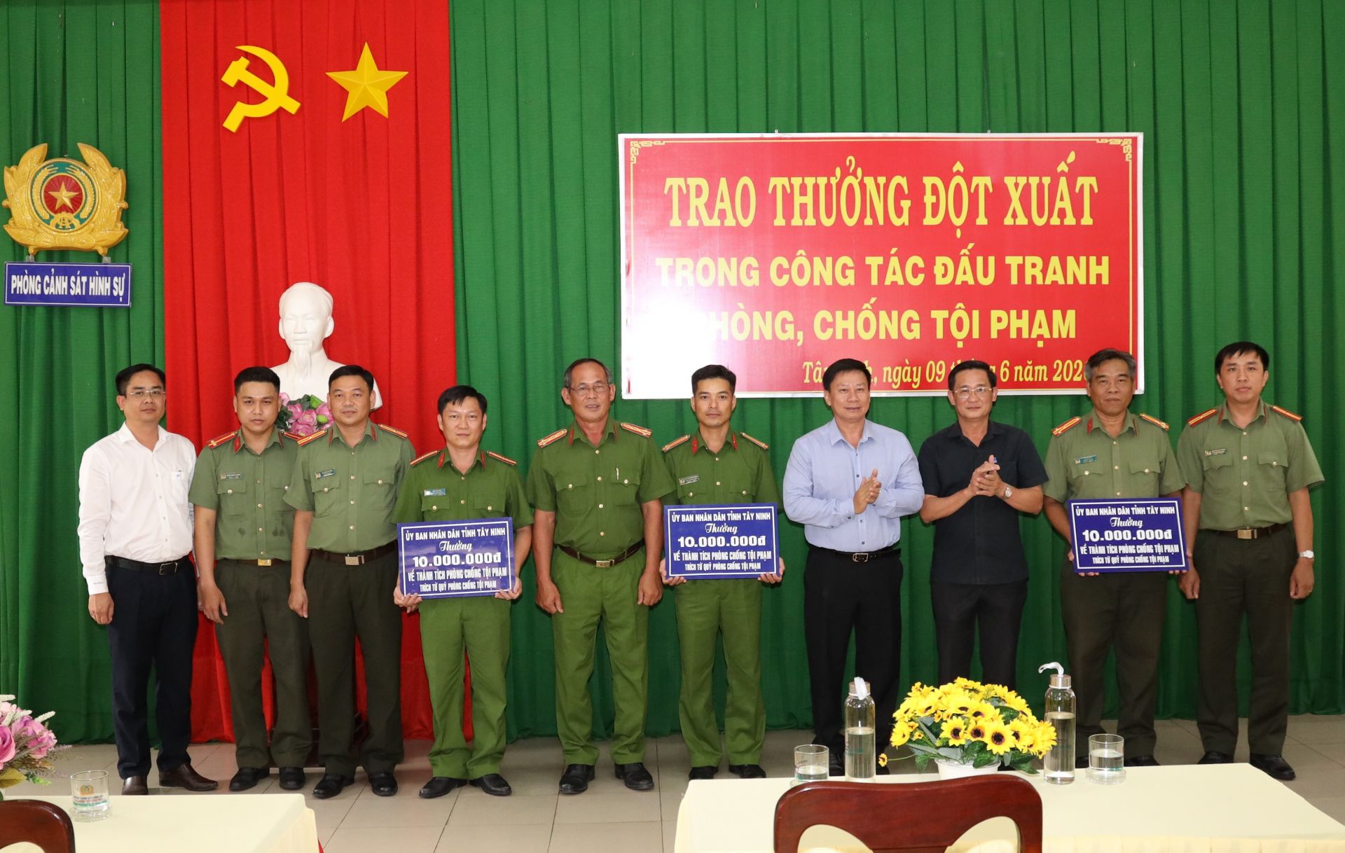 Trao thưởng đột xuất cho các đơn vị đã có thành tích xuất sắc trong công tác phòng, chống tội phạm.