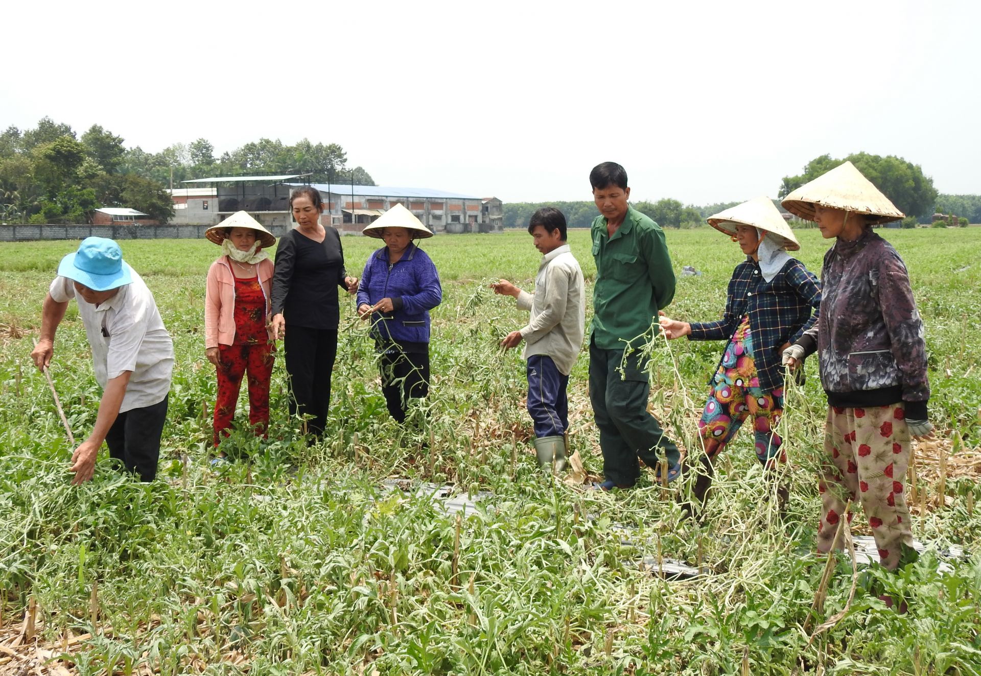 Một số bà con nông dân đang khảo sát tại cánh đồng dưa phía sau công ty thuộc da.