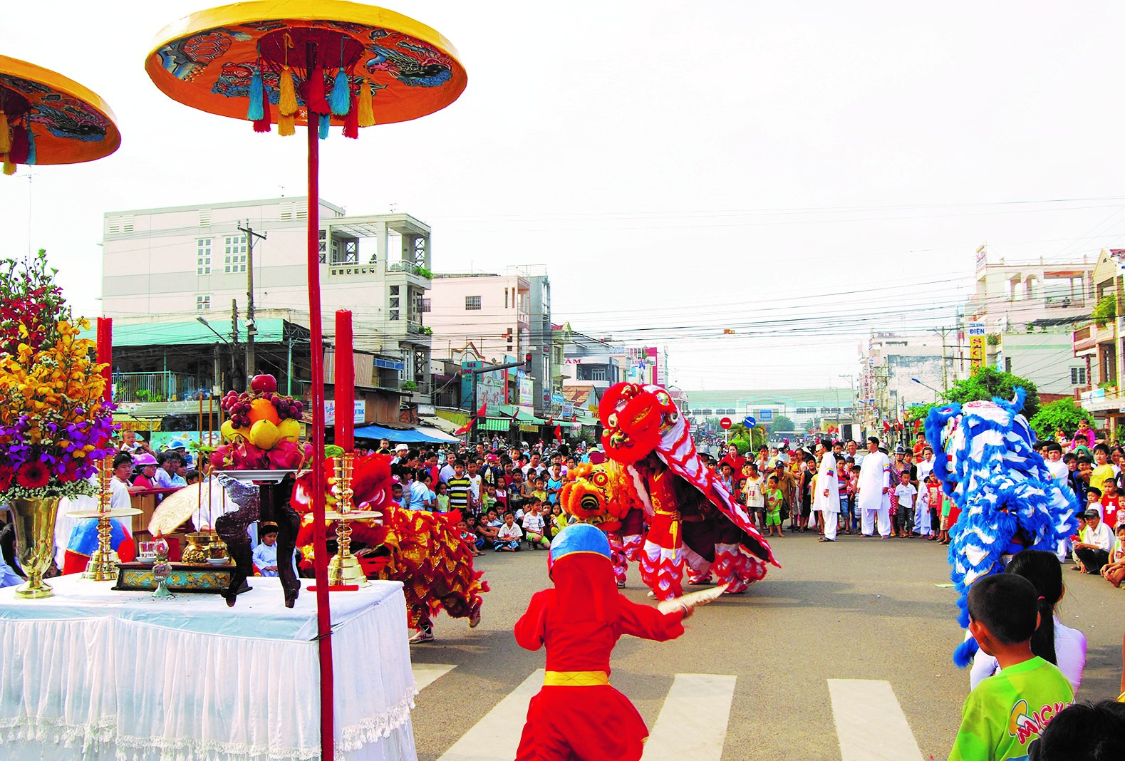 Lân múa trên đại lộ Hùng Vương.